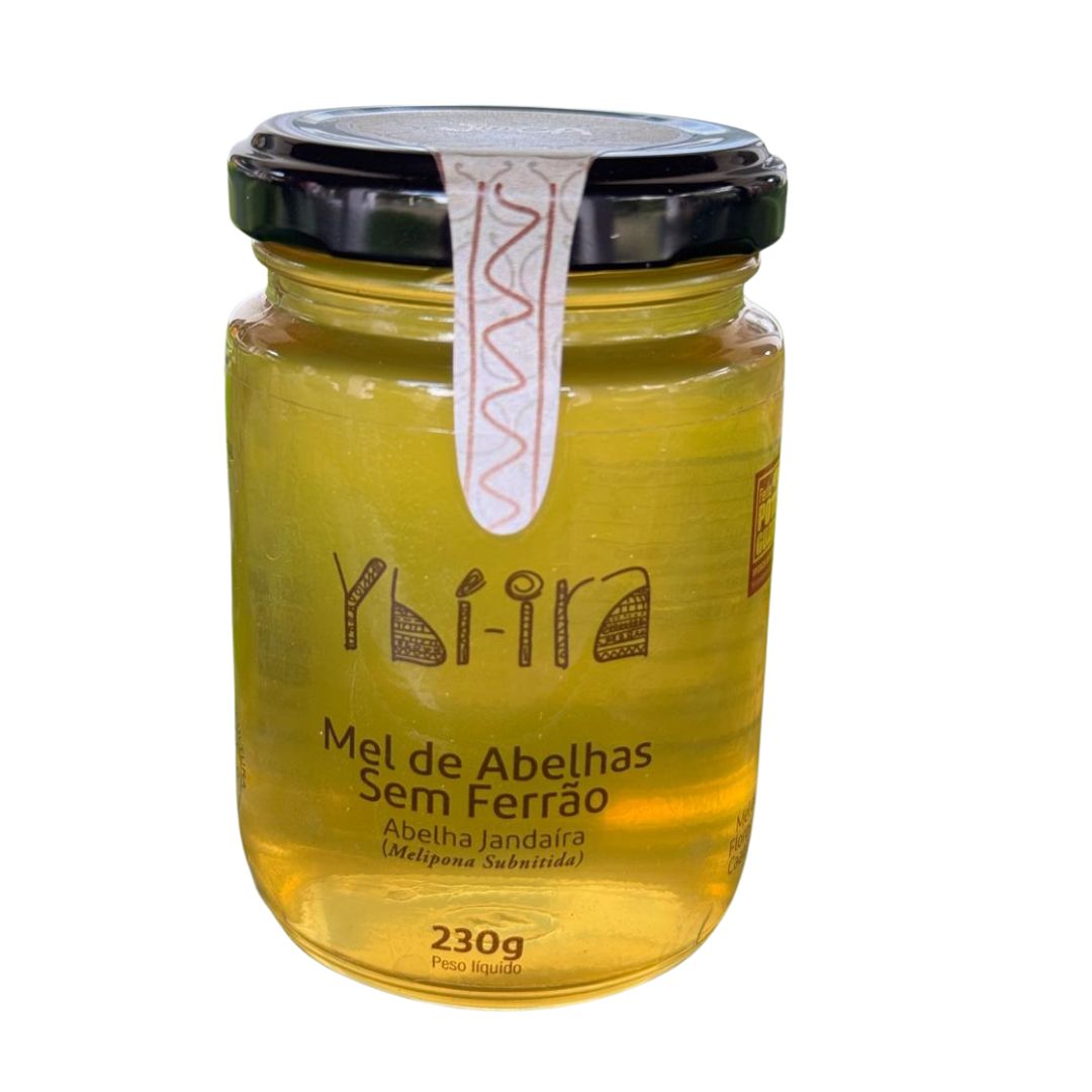 O  Mel Ybí-ira de abelhas nativas Jandaíra sem ferrão é comercializado em pote de vidro com 230g (peso líquido).  O produto entra no catálogo a partir de uma parceria colaborativa com propósito e impacto socioambiental entre a Fazenda Matina a Ybí-ira. Experimente essa delícia!